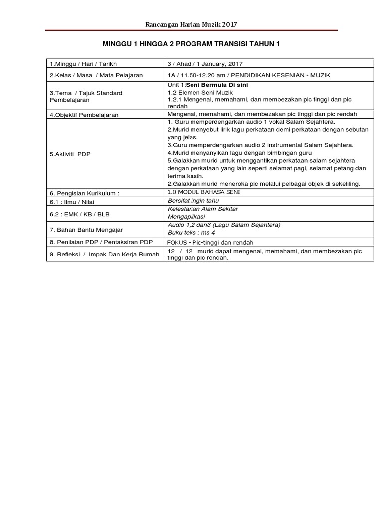 Seni Di Sekeliling Ku Tajuk. Rancangan harian muzik 2017 minggu 1 hingga 2 program transisi tahun 1 1minggu hari tarikh 3 ahad 1 january 2017 2kelas masa mata pelajaran Koleksi rancangan pengajaran harian rph pendidikan kesenian untuk kegunaan guru bagi. Rekod Trnsit Offline Kssr Tahun 2 Semakan 2018.